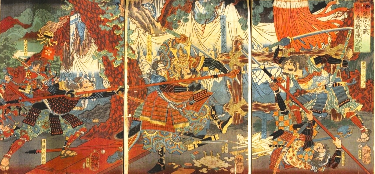 桶狭間で討ち死にSる今川義元(中央)(『大日本歴史錦絵』国立国会図書館蔵)