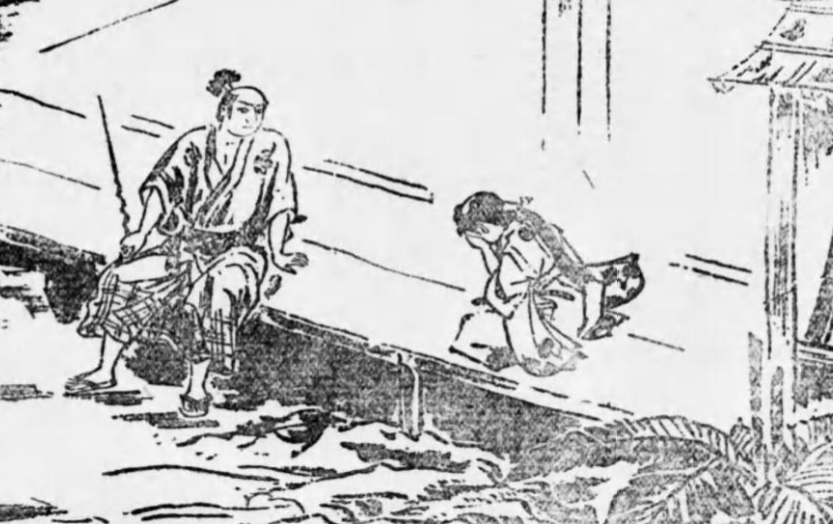 信長(左)の前で人質の辛さを涙する家康(『織田信長 歴史小説安土』国立国会図書館蔵)