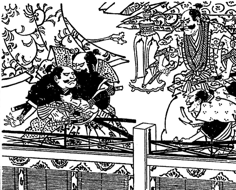 伏見城で取り押さえられる五右衛門。中央に千鳥の香炉が