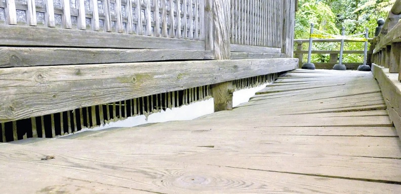 近江(滋賀県)琵琶後の東に位置する「湖東三山」のひとつ、釈迦山百済寺(滋賀県東近江市百済寺町)本堂の濡れ縁が破損した。